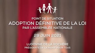 En 2 minutes, le débrief de Ludovine de La Rochère, présidente de La Manif Pour Tous, suite au vote en 3e lecture du projet de loi ni-bio ni-éthique, à l'Assemblée nationale.